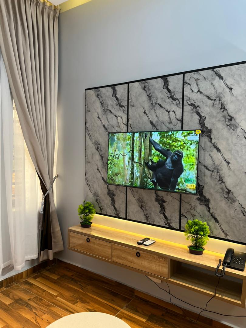 Experience comfort and style in our **Executive One Room Apartment**, perfectly designed for business travelers and individuals seeking a modern living space. The apartment features a spacious, well-furnished bedroom with a cozy lounge area, a private bathroom, and a fully equipped kitchenette. Enjoy premium amenities, high-speed Wi-Fi, air conditioning, and 24-hour power supply - all in a serene and secure environment ideal for both short and long stays.